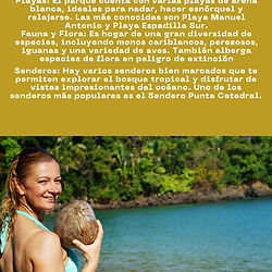 EXCURSIÓN DE UN DÍA: AVENTURA EN LA PLAYA Y EN EL BOSQUE LLUVIOSO. DURACIÓN: 1 0 HORAS APROXIMADAMENTE INCLUYE: • TRANSPORTE PRIVADO: TRANSPORTE IDA Y VUELTA DESDE SAN JOSÉ AL PARQUE NAL. MANUEL ANTONIO EN UN VEHÍCULO CÓMODO CON AIRE ACONDICIONADO. PARQUE NACIONAL MANUEL ANTONIO: EXPLORA EN SENDEROS Y ADMIRA LA BELLEZA NATURAL DEL PARQUE EN MEDIO DE PLAYAS DE ARENA BLANCA Y MUCHAS ESPECIES. • SEGURO DE VIAJE: COBERTURA BÁSICA PARA TU TRANQUILIDAD. DESAYUNO Y ALMUERZO TIPICOS INCLUIDOS • ITINERARIO DETALLADO: MAÑANA: • SALIDA TEMPRANO 6:00 AM DESDE SAN JOSÉ. • DESAYUNO EN UN RESTAURANTE LOCAL, CON PLATILLOS TIPICOS. • VIAJAREMOS POR LA RUTA COSTANERA DEL PACIFICO CENTRAL, RUTA QUE BORDEA EL OCEANO PACIFICO CON VISTAS MARAVILLOSAS Y PLANTACIONES DE PALMA AFRICANA. • LLEGADA AL PARQUE NACIONAL MANUEL ANTONIO: • CAMINATA POR LOS SENDEROS DEL PARQUE, DISFRUTANDO DE ESPECIES ENDEMICAS DE LA SELVA TROPICAL Y TIEMPO DE PLAYA EN EL PARQUE • ALMUERZO TIPICO A LAS 2:00 P M • TARDE : • REGRESO A SAN JOSE DAYPASS FORMA DE PAGOS VIA SINPE: 8942-6802 VIA SINPE: 8907-2444 TRANSFERENCIAS CUENTA BNCR CR71015110720020578347